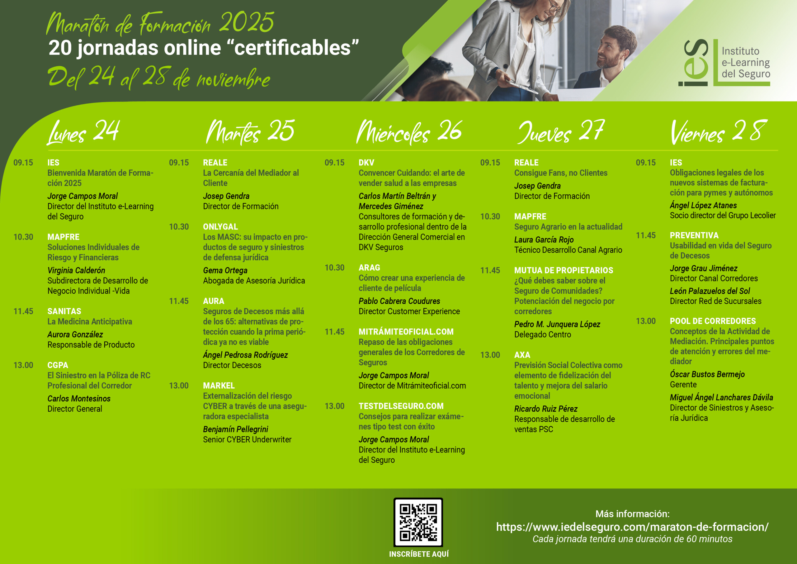 20 horas de formación certificables con temas de interés y actualidad para Corredores y Corredurías del 24 al 28 de noviembre