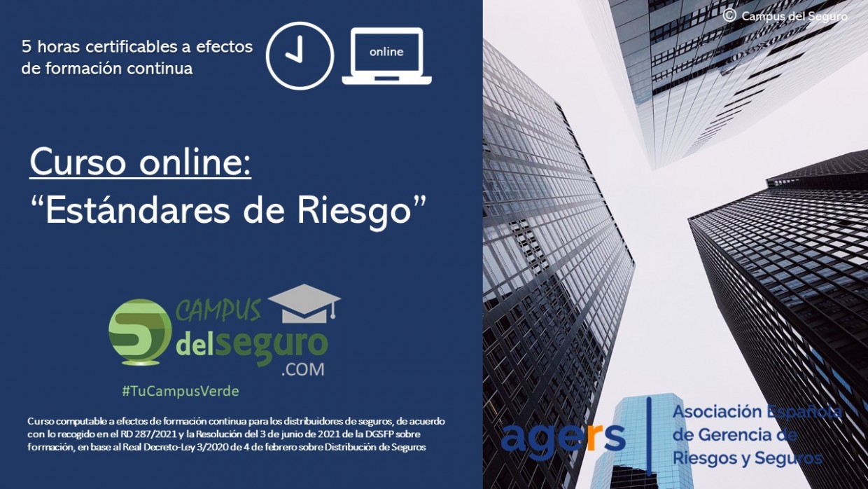 El curso se enmarca dentro del “Canal Gerencia de Riesgos by AGERS” y continúa el plan de formación online de este canal sobre Gerencia de Riesgos. AGERS, la Asociación Española de Gerencia de Riesgos y Seguros ha creado junto con Campus del Seguro un nuevo curso dentro del Canal de “Gerencia de Riesgos” titulado “Estándares